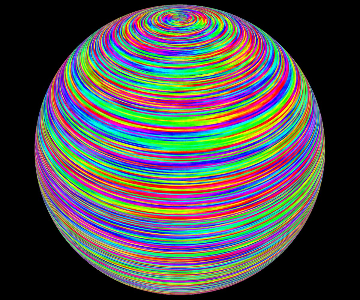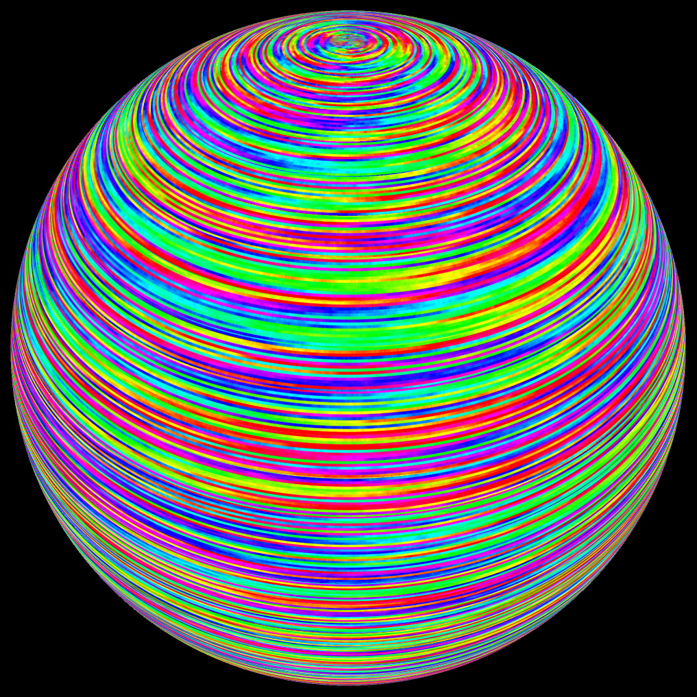 Nachkommastellen von Pi als Farbverschiebungen auf einer Kugel